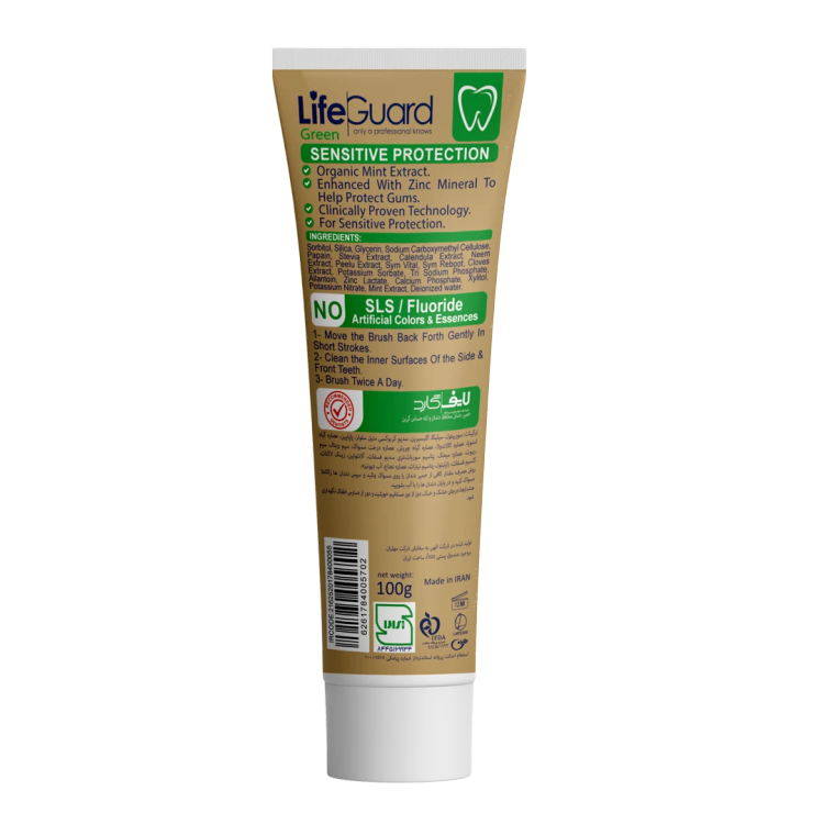 خمیر دندان محافظ دندان و لثه حساس گرین برند لایف گاردlife goard با حجم 100 گرم
