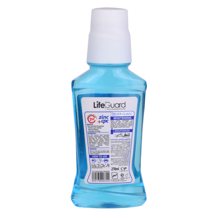 دهانشویه بزرگسال سفیدکننده (Silver Guard) برند لایف گارد life goard با حجم 270 میلی لیتر