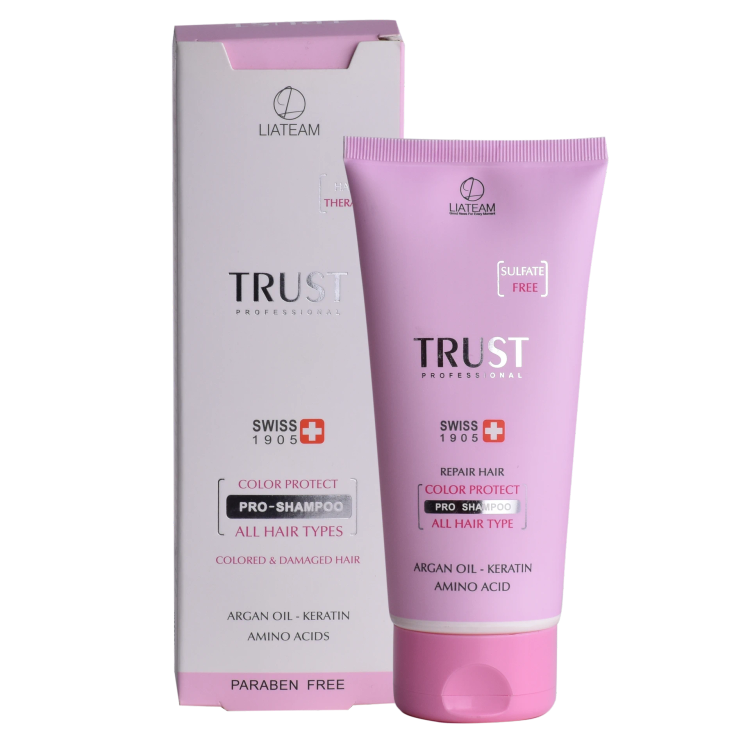 شامپو تخصصی تثبیت رنگ تراست trust مخصوص موهای رنگ شده فری سولفات